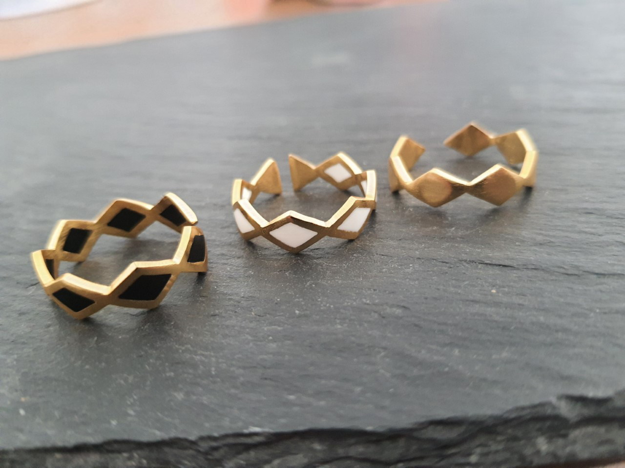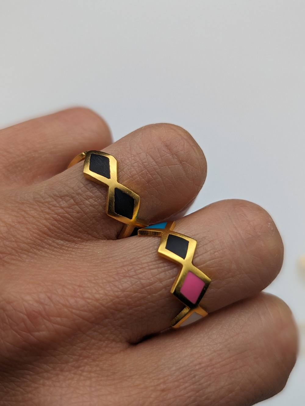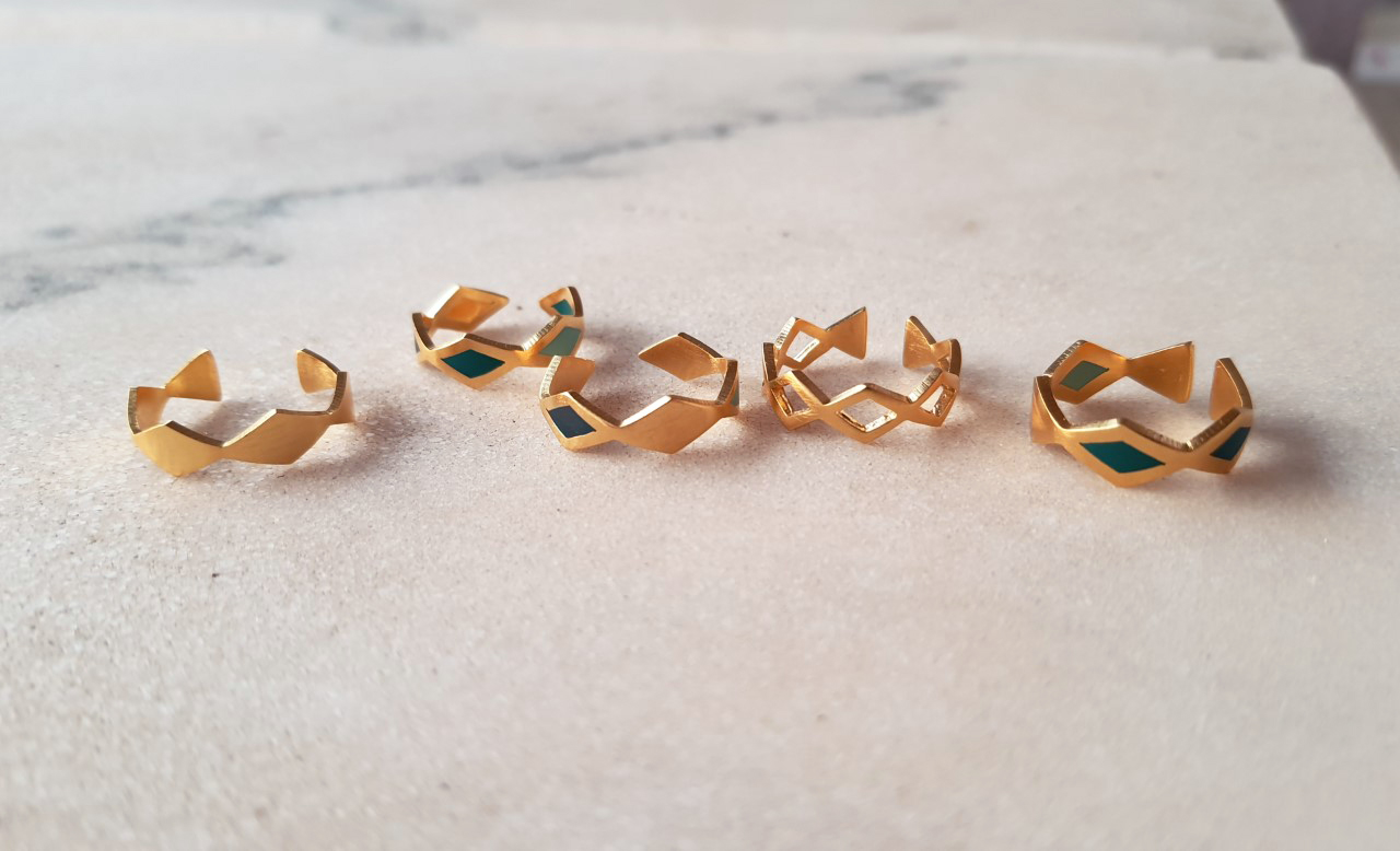 - Diamond shape plain & outlined rings.